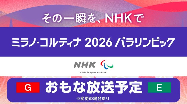おお!6日から始まるミラノ・コルティナのパラリンピック、ちゃんとNHKで放送してくれるじゃん!日本時間3/7(土)~16(月)、総合とEテレで。しかも夜7時台、8時台のゴールデンタイムもたくさん。ありがたい。受信料払っててよかったわ。家族で観よう。